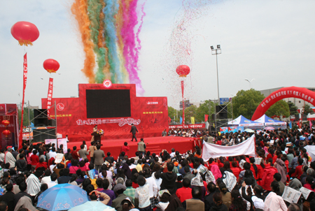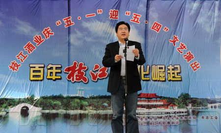 4月23日,枝江酒業(yè)集團玖源包裝有限公司總經(jīng)理劉鳳春在公司門口為獲得2009年度生產(chǎn)標兵的10名優(yōu)秀員工舉行歡送儀式,獎勵他們赴三峽旅游。 …