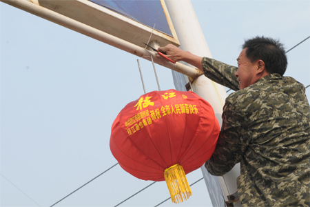 春節(jié)前夕,枝江城區(qū)的迎賓大道、團(tuán)結(jié)路、沿江大道、民主路、公園路、江漢大道等城區(qū)主要道路兩旁全部掛上了主題為“誠信吉祥”的“有德吉祥燈”。紅紅的燈籠不僅裝點(diǎn)了城市的節(jié)日喜慶氣氛,更是一種崇尚道德的深情表達(dá)。由中共枝江市委宣傳部和枝江酒業(yè)集團(tuán)聯(lián)合推出。圖為1月26日,枝江酒業(yè)員工和孩子們協(xié)助工作人員在江漢大道上掛燈籠的畫面。