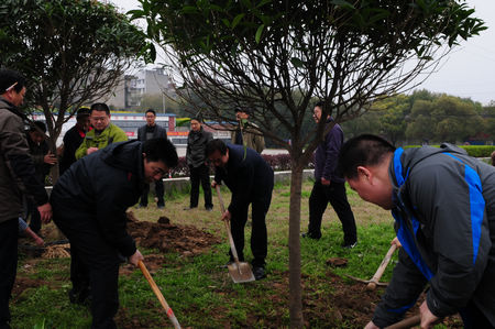 3月19日,由枝江酒業(yè)總裁曹榮開帶隊(duì),總經(jīng)理陳洪衛(wèi)、黨委書記張華等高管及部分員工代表到百里洲鎮(zhèn)進(jìn)行義務(wù)植樹活動。百里洲鎮(zhèn)被譽(yù)為“萬里長江第一洲”,是全國少有的農(nóng)業(yè)大鎮(zhèn),以其獨(dú)特的地理位置在全國有較高的知名度。特別是近幾年火熱的環(huán)島自行車比賽,吸引了不少外國朋友的參與,已經(jīng)成為自行車愛好者的樂園。為支持百里洲做好綠化、亮化和美化工程,枝江酒業(yè)積極參與其中。枝江酒業(yè)總裁曹榮開表示:栽下一棵樹,是為了結(jié)下三分緣,結(jié)一分“綠滿荊楚”的緣,結(jié)一分為“城鄉(xiāng)一體、四化同步”添新綠的緣,結(jié)一分融入大自然的緣。百里洲鎮(zhèn)在抗洪廣場周邊規(guī)劃了“義務(wù)植樹林”,枝江酒業(yè)在規(guī)劃的區(qū)域植下9棵樹冠飽滿圓潤、分支點(diǎn)在1.6米以上、米徑10米以上的桂花樹。