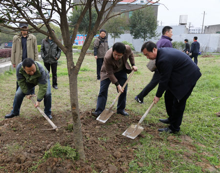 總經(jīng)理陳洪衛(wèi)(左一)參與植樹