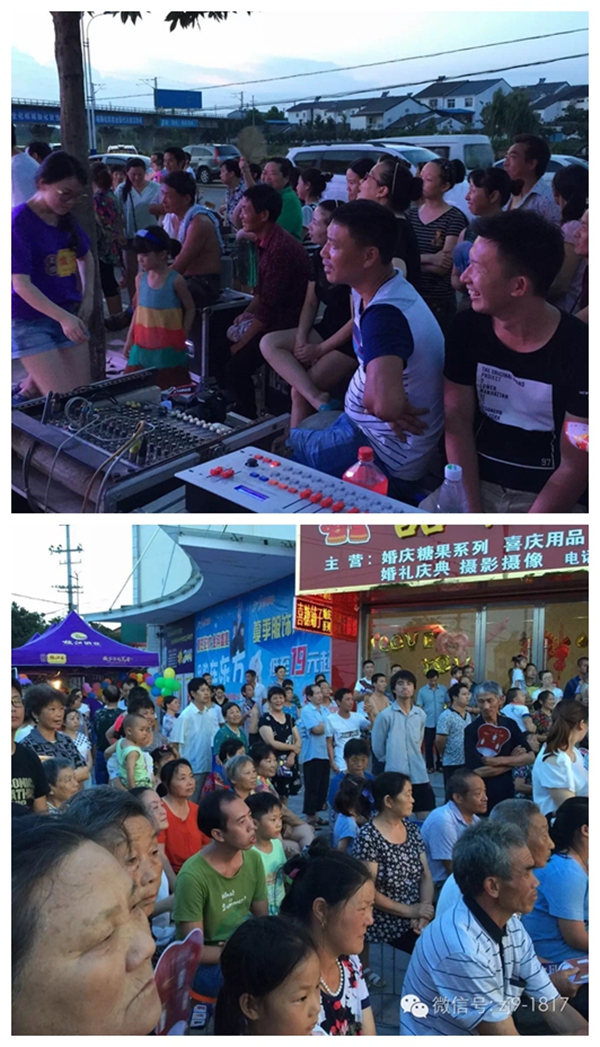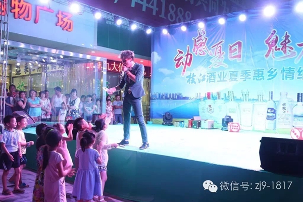 7月23日,枝江酒業(yè)在安福寺鎮(zhèn)舉辦“動感夏日 魅力枝江”鄉(xiāng)村行文藝演出,為當(dāng)?shù)厝罕妿碡S富的文化套餐。這是枝江酒業(yè)在這個夏天“送戲下鄉(xiāng)”的第一站。枝江酒業(yè)總裁曹榮開、銷售公司總經(jīng)理侯先圣到文藝演出現(xiàn)場,與代理商趙勇、王春華、王國慶一起就新品推廣做調(diào)研。